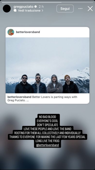 Better Lovers is parting ways with Greg Puciato.