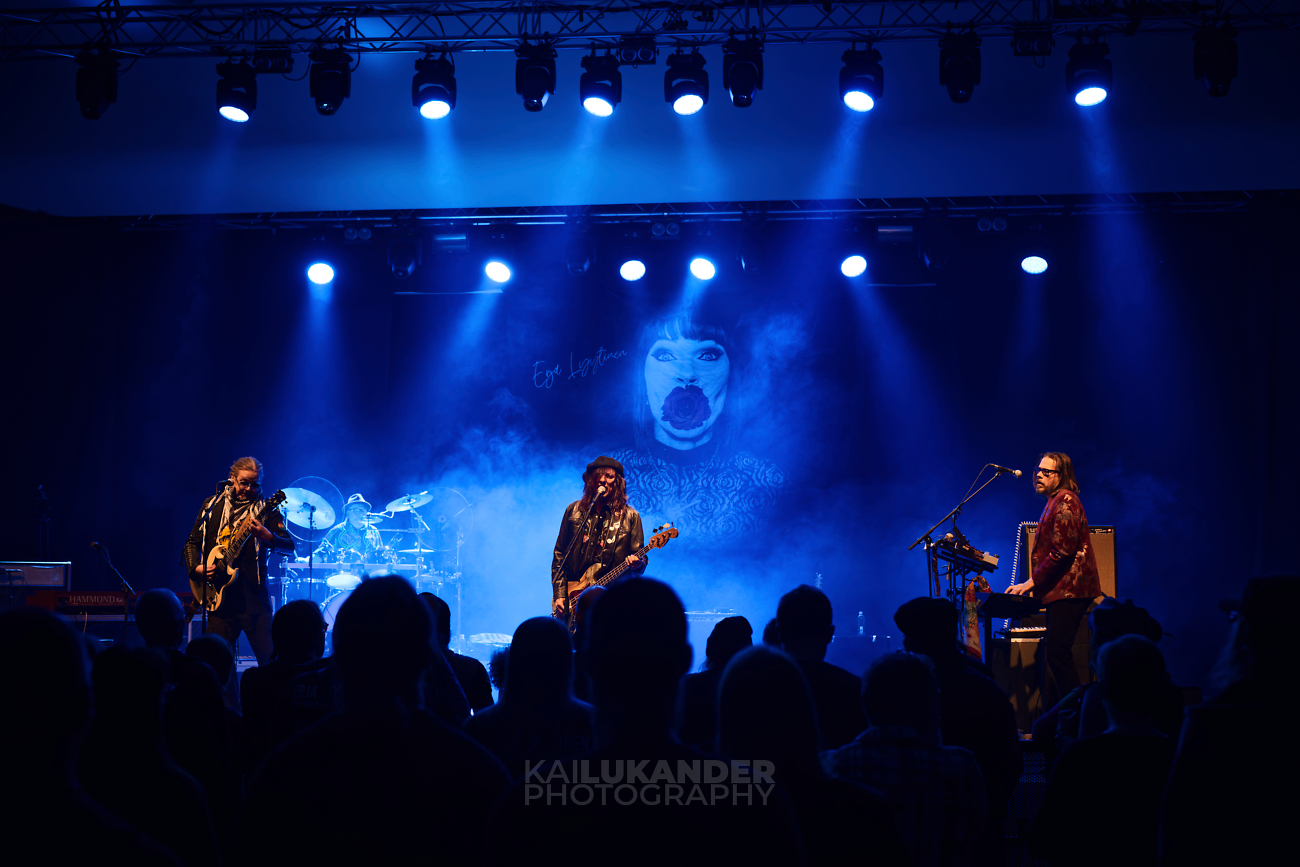 Despite the guitarist being multi-talented, Erja always performs with an incredible band, regardless of the lineup, but on this current tour, the musicians Harri Taittonen on keyboards, Heikki Saarenkunnas on bass, and drummer Jesse Lehto add a lot to the show by bringing life to the songs released in the last two decades. Continuing a tradition of performing a song with her opening acts, Erja called Sami Yaffa to the stage and together they played “One Thing I Won’t Change” from the 2010 album Voracious Love, with Sami on bass sharing vocals with Lyytinen. It was also during this song that a fan started singing “Paljon onnea” and was joined in by the rest of the venue, filling the birthday girl with joy.
