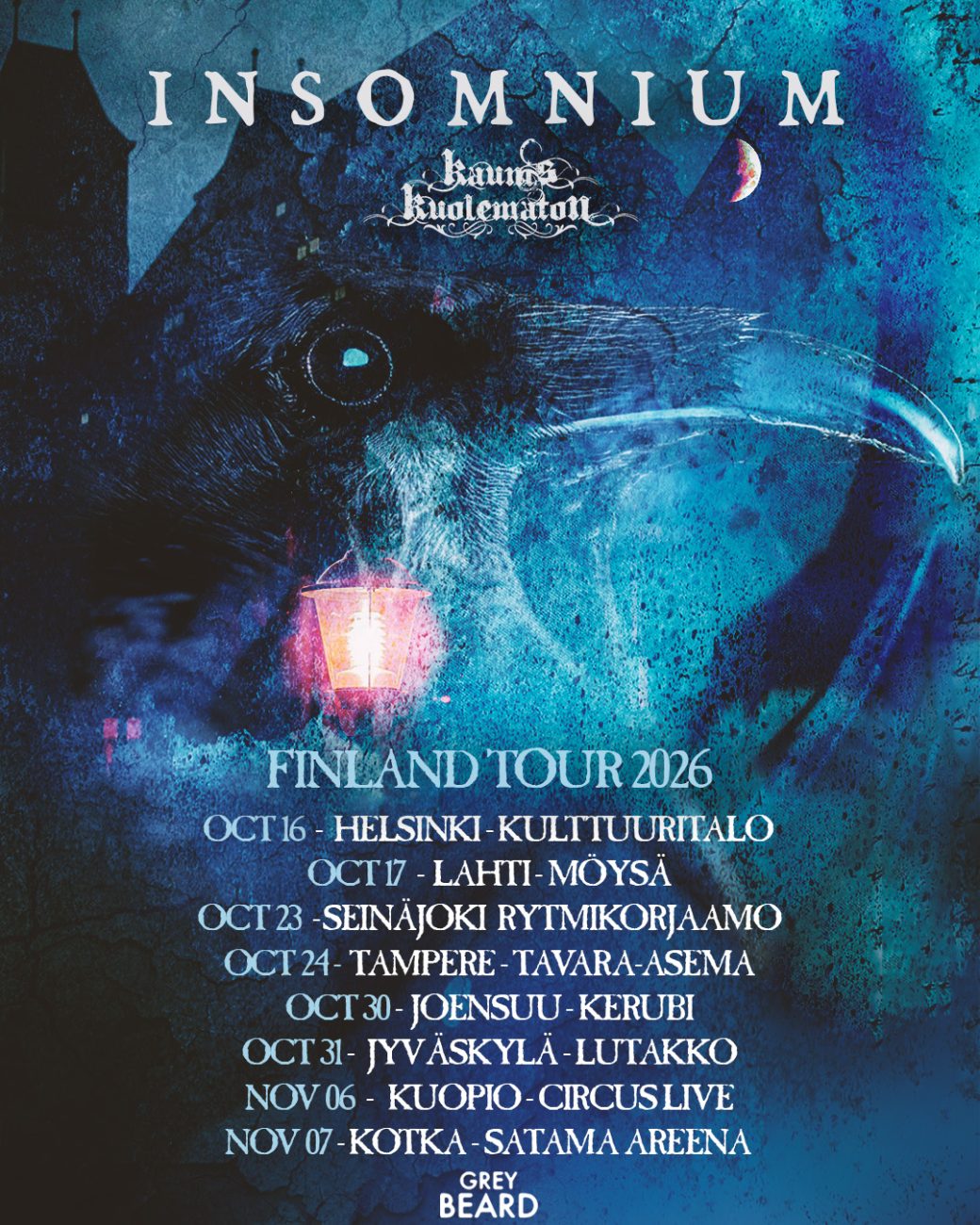 Melodic death metal band Insomnium has just revealed a Finnish tour in November 2026, with special guests Kaunis Kuolematon.