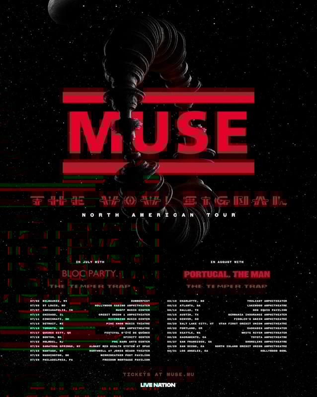 Grammy Award-winning English rock giants Museare launching a massive North American amphitheater tour just one week after revealing their upcoming tenth studio album, “The Wow! Signal”, as per Blabbermouth. Live Nation is promoting “Muse – The Wow! The debut of “Signal Tour” is scheduled for July 5. Various pre-sales will begin on Tuesday, March 31 at 12:00 p.m. local time, and the general on-sale will commence on Friday, April 3 at 10:00 a.m. local time at muse.mu.