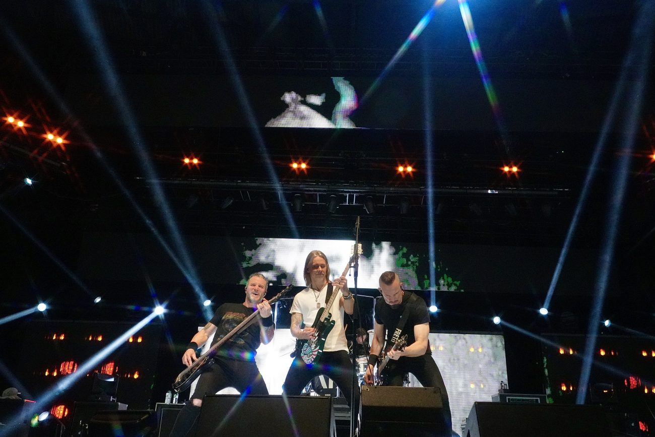 On the 5th of March, the American rock giants, Alter Bridge, brought their heavy set to Nottingham. It wasn’t the first time the band had visited the city, and their performances have been improving over the years. Nottingham was the last city of the “What Lies Within” tour, and all three bands, Sevendust, Daughtry, and Alter Bridge, shared how special the tour was to them and how much they appreciated one another and all the fans. We were very lucky to witness the last day of the tour in its whole glory. Sevendust, who performed first, expressed their heartfelt gratitude to everyone involved with the tour, including the audience. Daughtry, who performed second, gave an emotional performance and thanked the crew of the venue, Motorpoint Arena, including security. Alter Bridge – the night’s headliners – took the show to the next level. The stage design was outstanding. The lights and the background visuals enhanced each song and made the show extra special. All four band members performed as a well-oiled machine. Myles Kennedy, Mark Tremonti, Brian Marshall and Scott Phillips evidently gave it all during their performance in Nottingham. The crowd was singing along, dancing and having a great time throughout the show. Motorpoint Arena hosted Alter Bridge many times before, and we hope it wasn’t the last. We hope to see them again soon. Please check the photos of all three bands – Sevendust, Daughtry and Alter Bridge – performing in Nottingham.