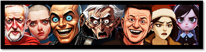 Music, movies and most of all, politics are loved and lampooned in equal measure and readers can expect a ‘no prisoner’ approach to the subject matter! Huge cult TV classics are parodied and praised – expect to see the ‘Dark Arts’ applied to the likes of Yellowjackets, The Last of Us, Dr, Who, Stranger Things and Tim Burton’s wonderful Wednesday.
