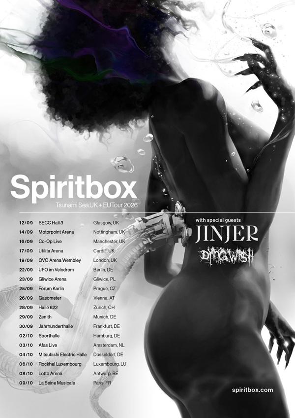 After an electrifying performance at this year’s Grammy Awards where they were nominated for the third consecutive year, Spiritbox’s unstoppable rise continues as they announce the “Tsunami Sea” Tour their first ever European arena headline tour. All shows feature a carefully curated line-up of forward-thinking, genre-defying heavy acts, with special guests Jinjer and Dying Wish.