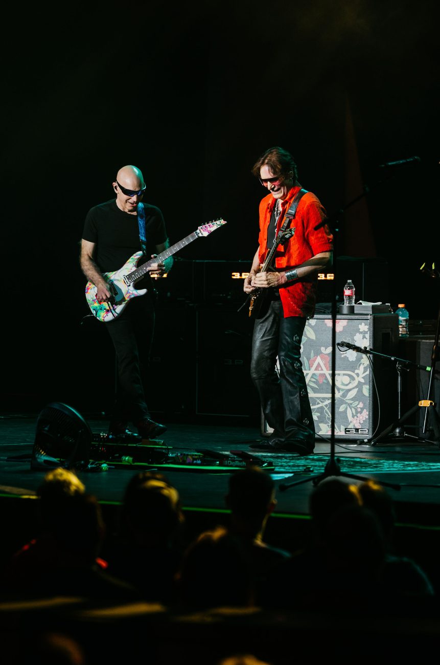 The part of the night when instead Joe Satriani played was all about momentum. Satriani’s playing was smooth and melodic, while Vai‘s was sharp and dramatic. The two of them worked together to create a dynamic tension that defined the show. The best part of the concert was when the two guitarists started trading songs and spending more time on stage together. When they got back together for “If I Could Fly,” the energy changed. The crowd was witnessing two masters lift each other up, instead of compete.