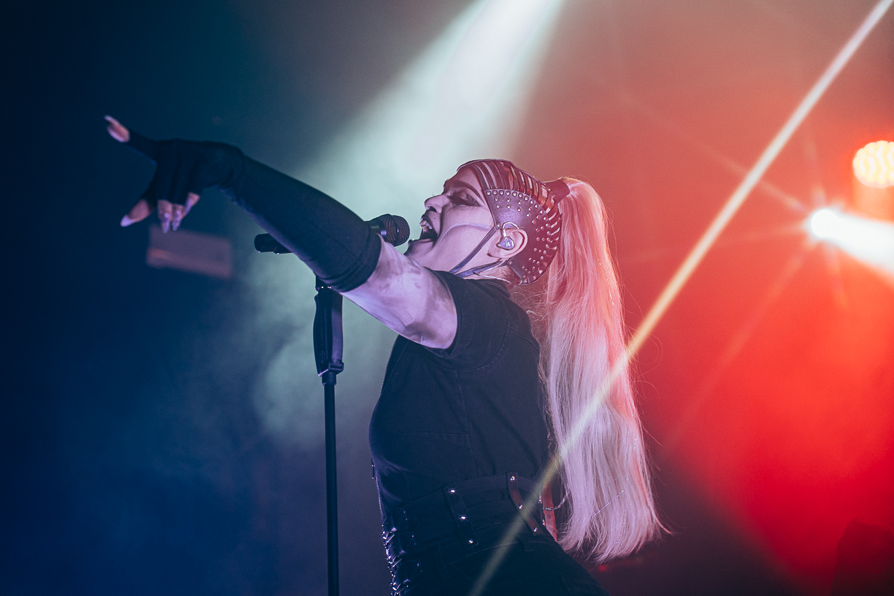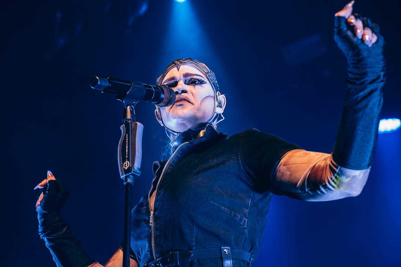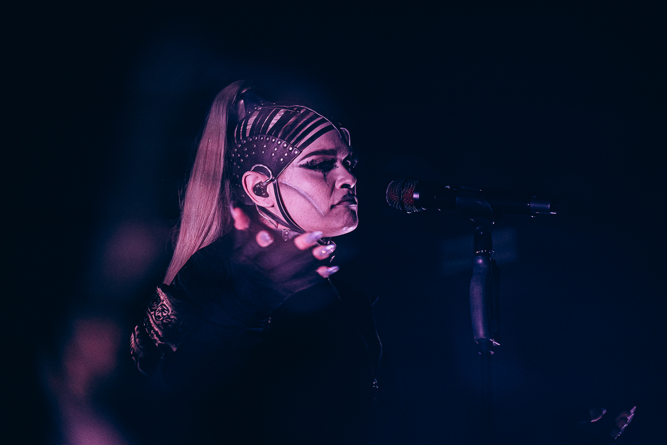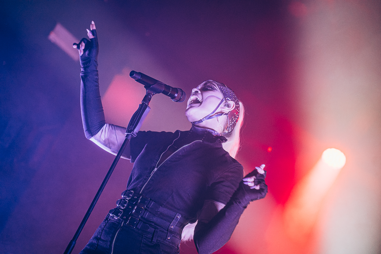 As the opening bars of “Michelle Carter” kick in, it becomes clear what SKYND is all about: not shock value, but a relentless confrontation with real-life crimes and the tragedies behind them. The enchantingly beautiful SKYND, with her haunting and utterly sublime voice, and the mysterious Father, both of whom always perform in masks, have carved out a distinctive place for themselves in the music world over the past few years with songs about real-life criminal cases, and live, these songs thunder towards the fans with even greater force.