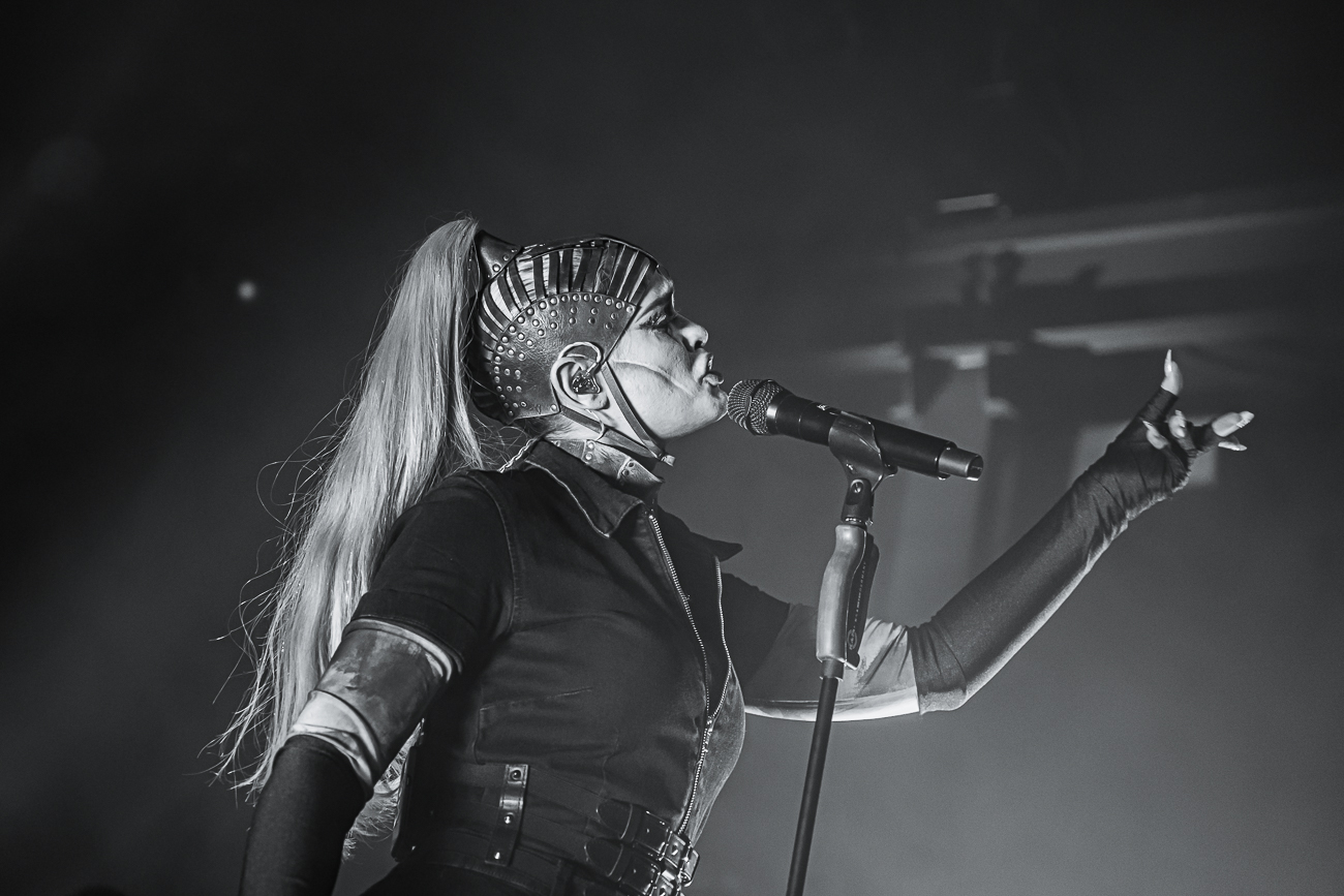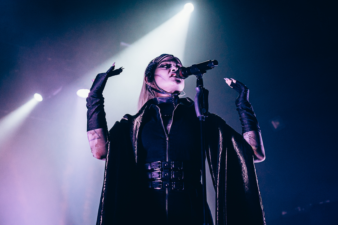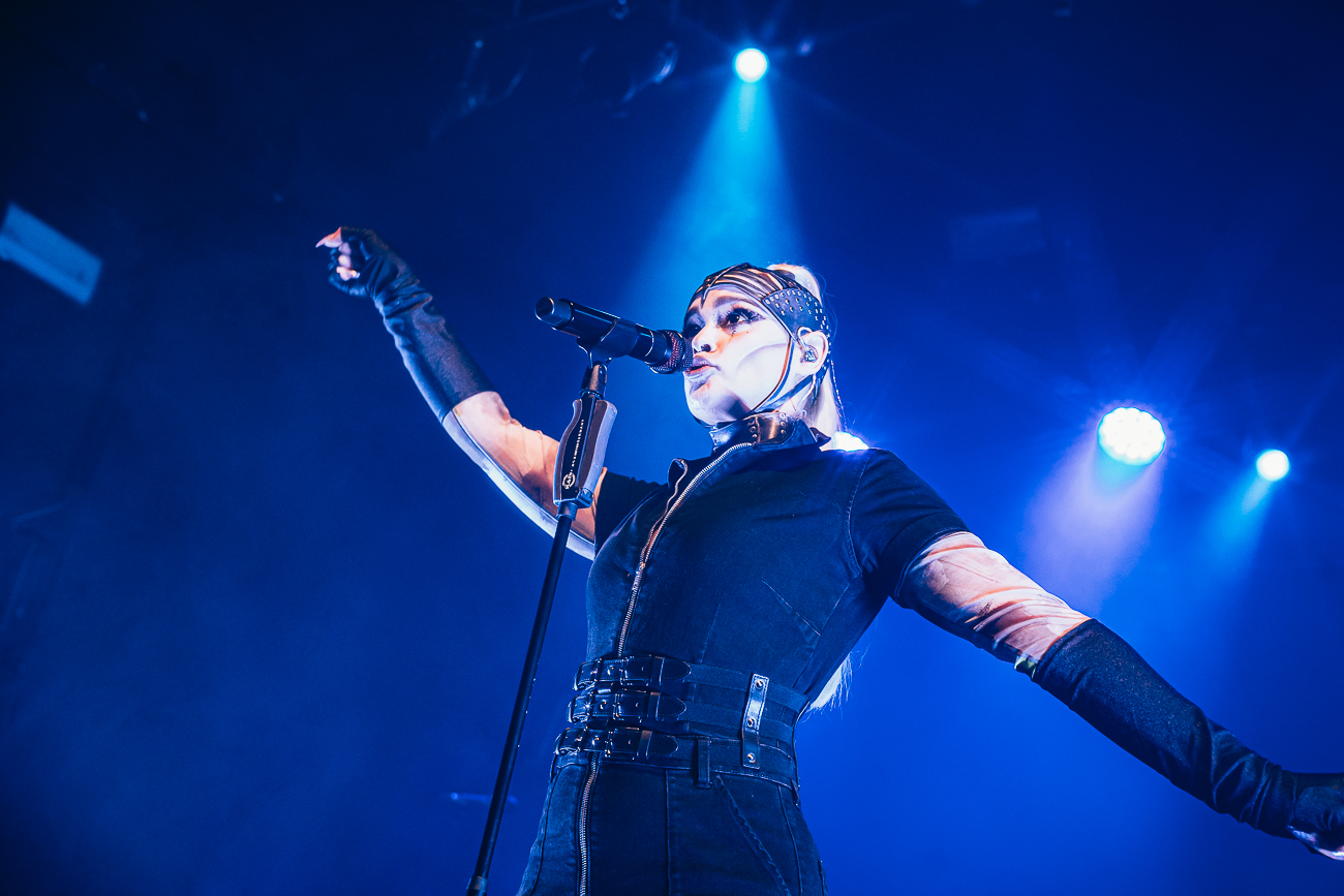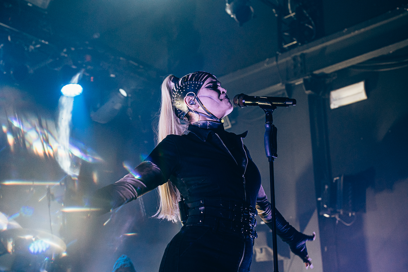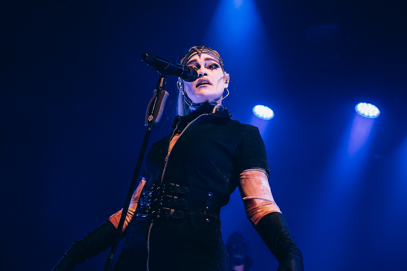 As the opening bars of “Michelle Carter” kick in, it becomes clear what SKYND is all about: not shock value, but a relentless confrontation with real-life crimes and the tragedies behind them. The enchantingly beautiful SKYND, with her haunting and utterly sublime voice, and the mysterious Father, both of whom always perform in masks, have carved out a distinctive place for themselves in the music world over the past few years with songs about real-life criminal cases, and live, these songs thunder towards the fans with even greater force.