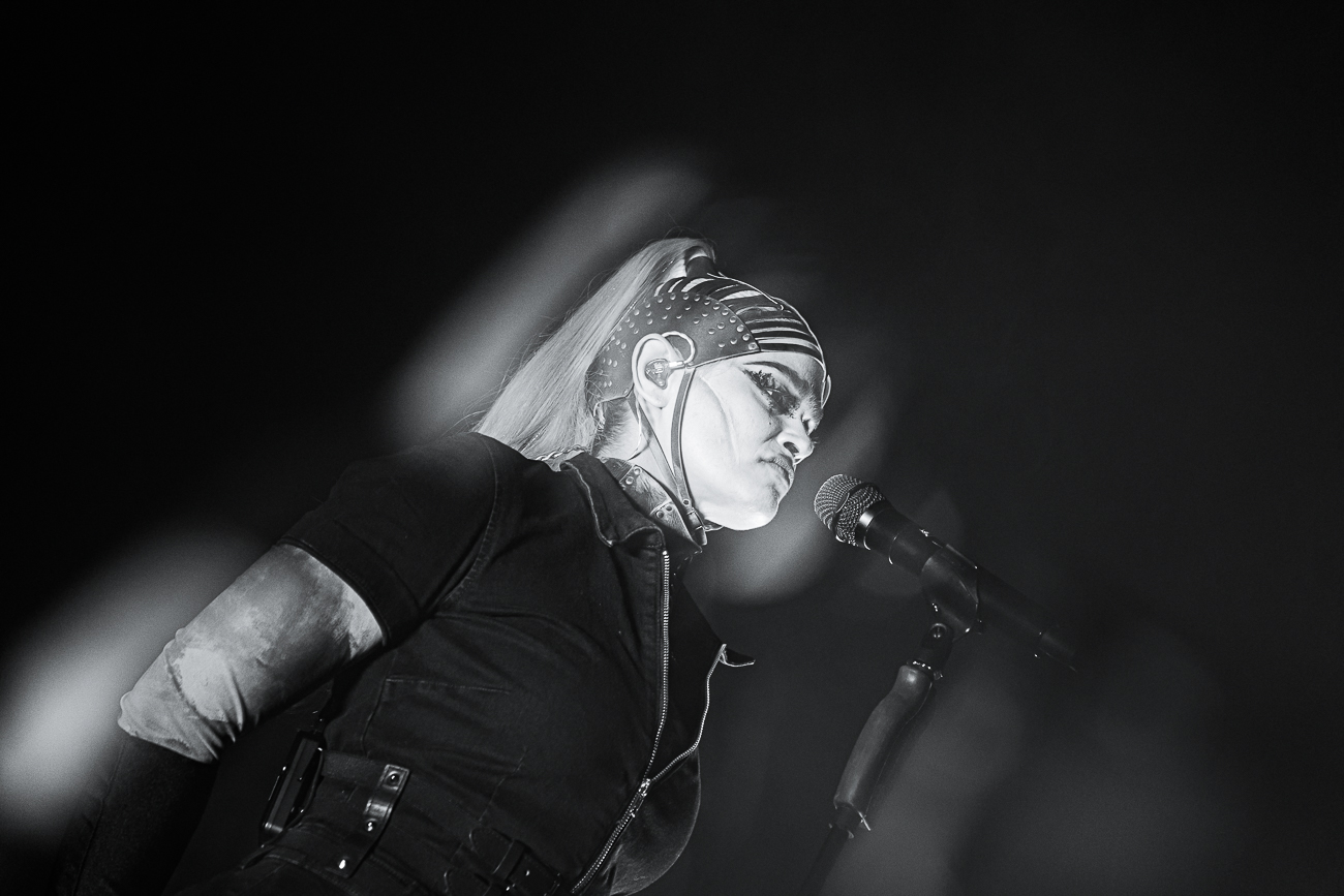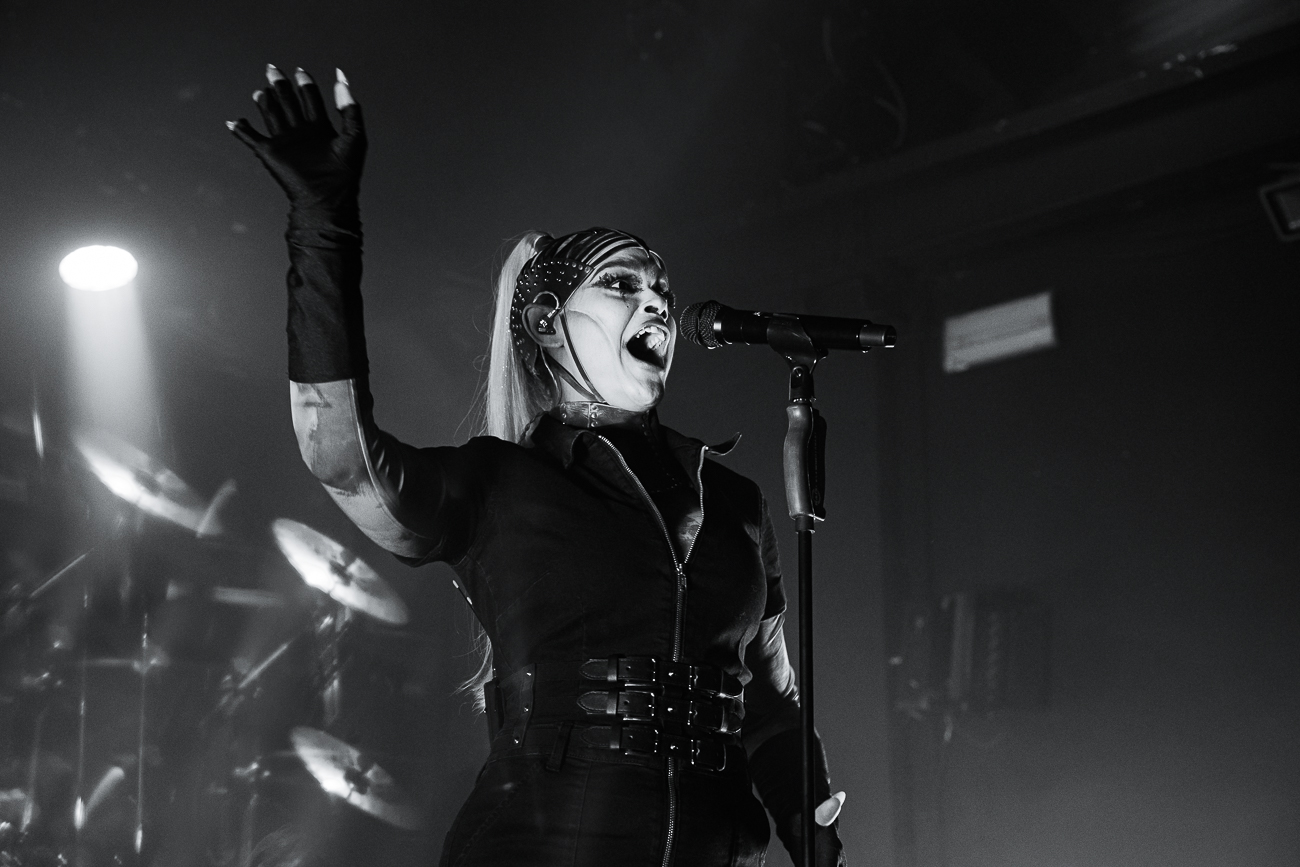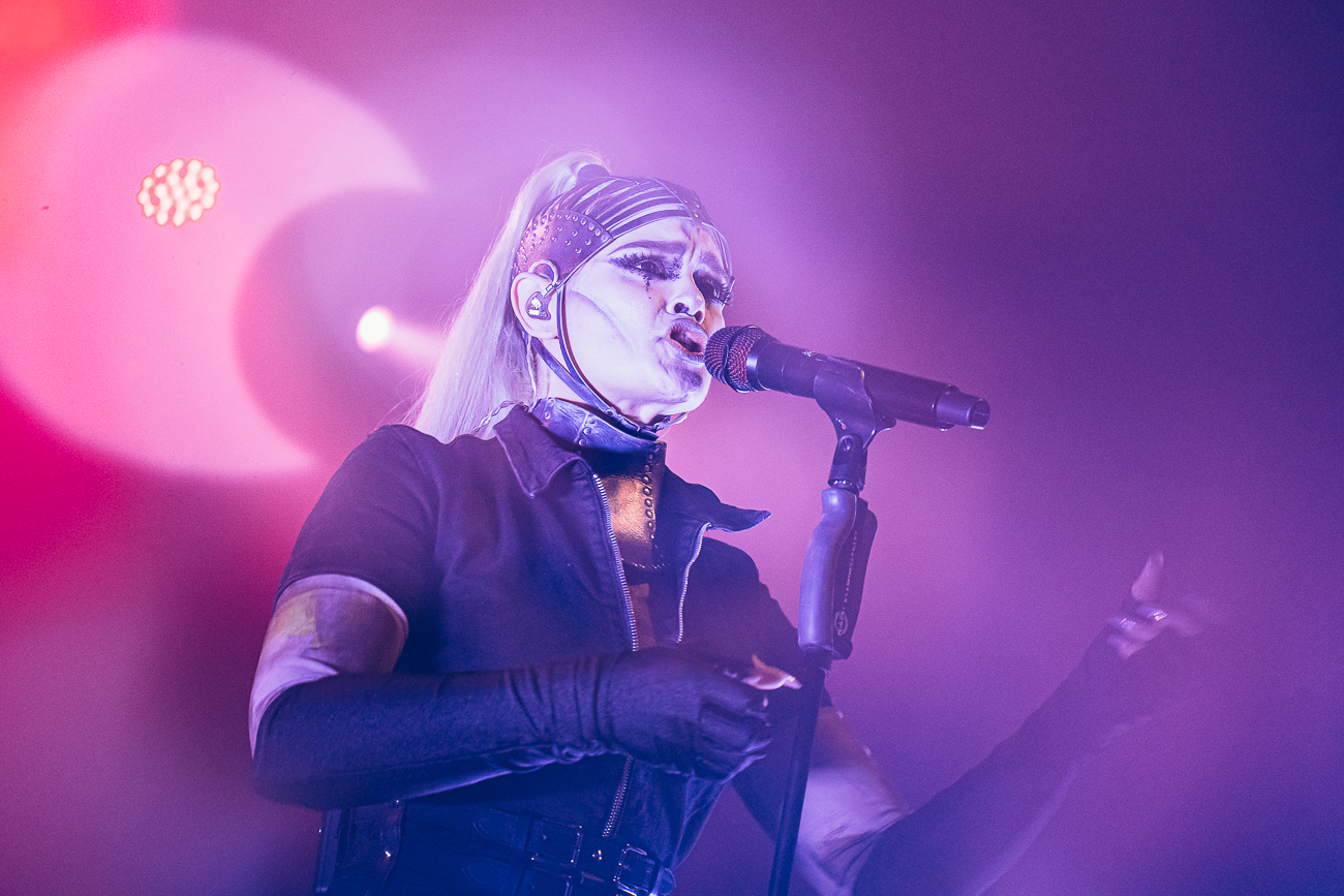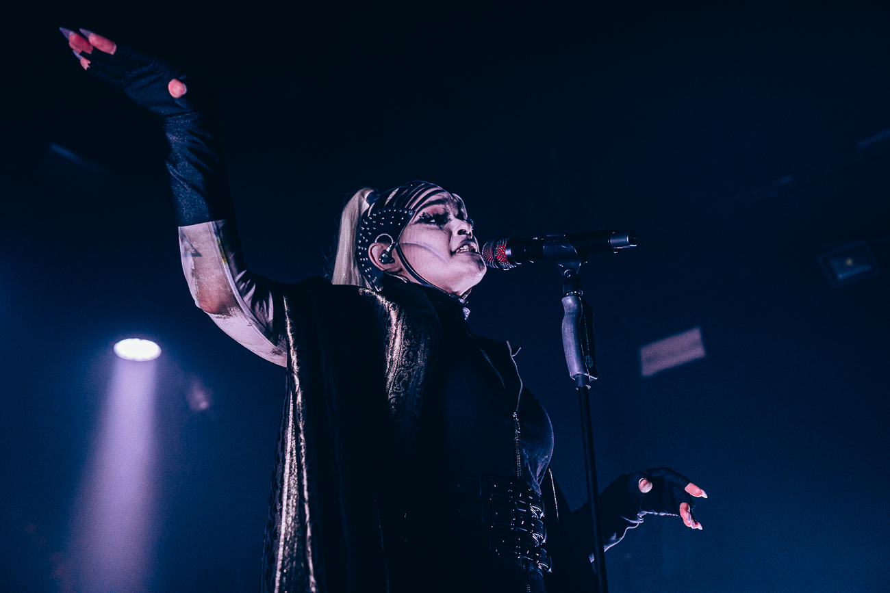 As the opening bars of “Michelle Carter” kick in, it becomes clear what SKYND is all about: not shock value, but a relentless confrontation with real-life crimes and the tragedies behind them. The enchantingly beautiful SKYND, with her haunting and utterly sublime voice, and the mysterious Father, both of whom always perform in masks, have carved out a distinctive place for themselves in the music world over the past few years with songs about real-life criminal cases, and live, these songs thunder towards the fans with even greater force.