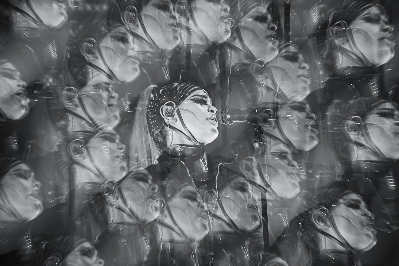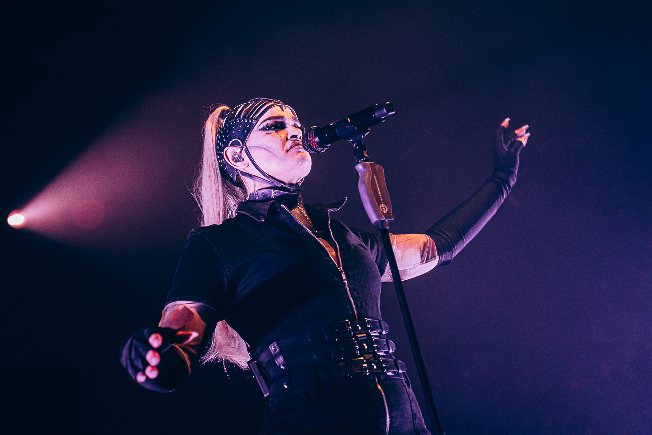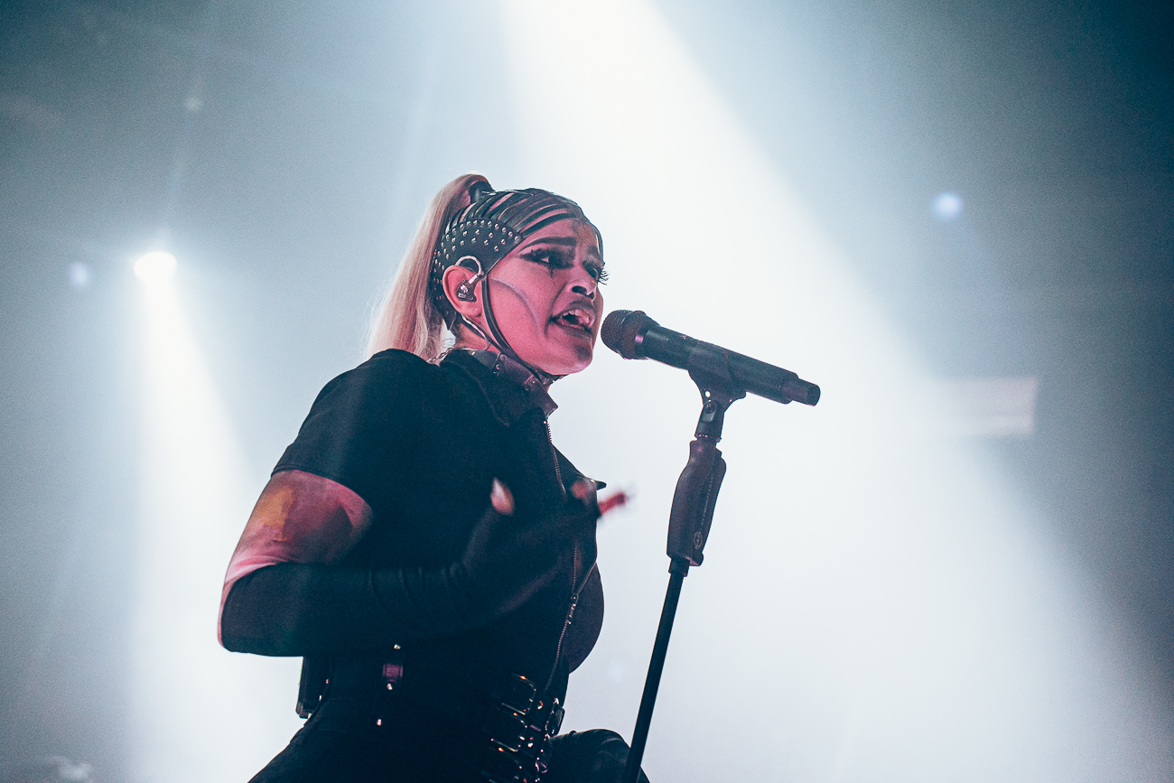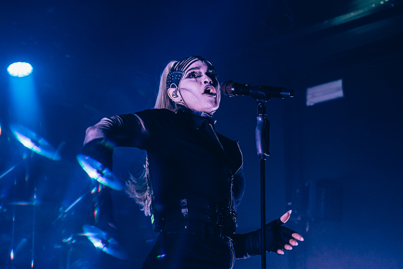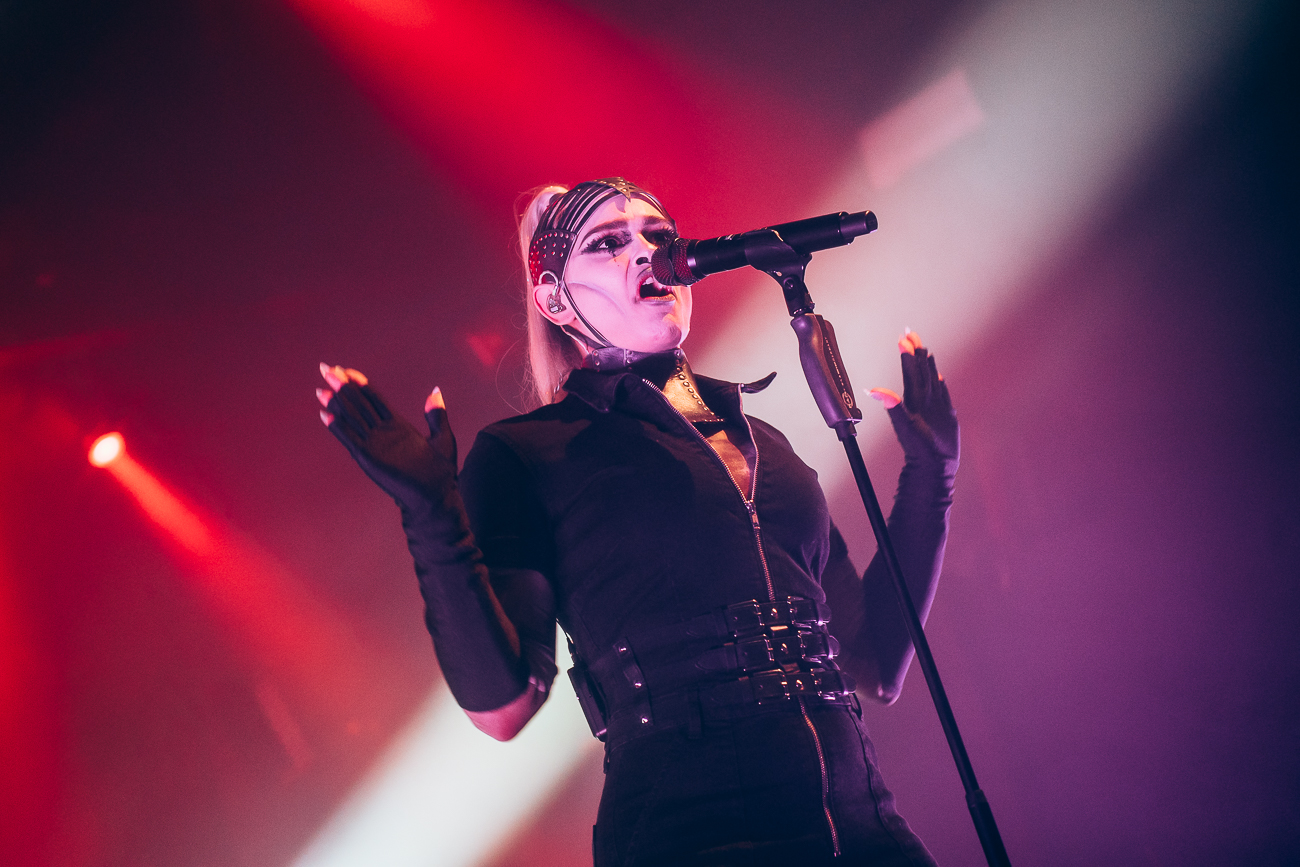 As the opening bars of “Michelle Carter” kick in, it becomes clear what SKYND is all about: not shock value, but a relentless confrontation with real-life crimes and the tragedies behind them. The enchantingly beautiful SKYND, with her haunting and utterly sublime voice, and the mysterious Father, both of whom always perform in masks, have carved out a distinctive place for themselves in the music world over the past few years with songs about real-life criminal cases, and live, these songs thunder towards the fans with even greater force.